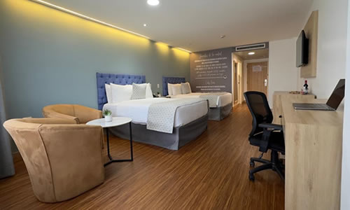 Explica que la renovación del hotel contempló sus 110 habitaciones, áreas comunes, sauna, piscina, restaurantes y salones de eventos que hoy muestran un diseño moderno y funcional, inspirado en las actuales demandas de los visitantes; también incluyó la compra de nuevos activos de operación propios de la actividad hotelera, para brindar una vivencia integral de servicio y calidad a la vanguardia.